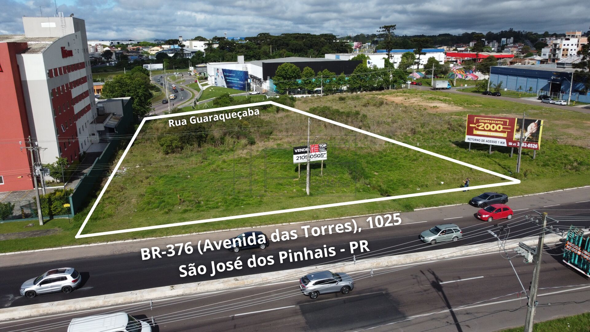 Praticamente 70 m de testada para a BR 376 e 44m de testada para Rua Guaraqueçaba, contíguo com o Hotel Ibis Aeroporto.